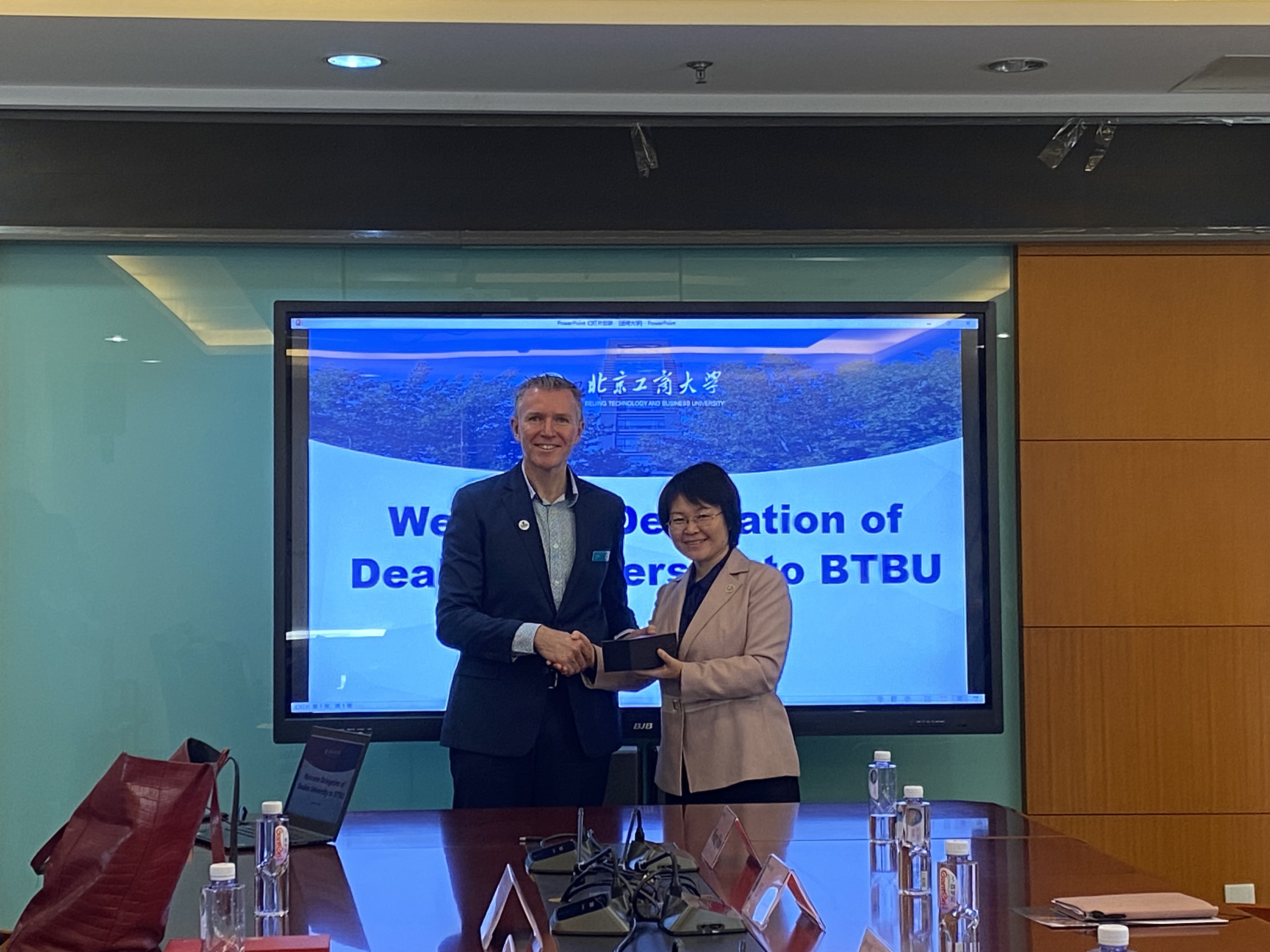Deputy Minister Higgins thanked Beijing Technology and Business University for its hospitality while introducing Deakin University's history and current development status in Australia alongside research focuses within their Department of Business Law. Deakin University (referred to as "DKU") ranks among Australia's top ten universities globally recognized within the top 2% worldwide with numerous international accreditations achieved thus far. He reflected on past collaborative achievements while considering new opportunities ahead—currently characterized by a dual degree program through business school coupled with a 2+2 study abroad initiative via our School for International Education where both disciplines align closely. Moreover, he emphasized Deakin University's commitment to fostering cooperative endeavors between both institutions moving forward including online teaching collaboration under “Quaro” alongside short-term exchange programs during upcoming semesters.