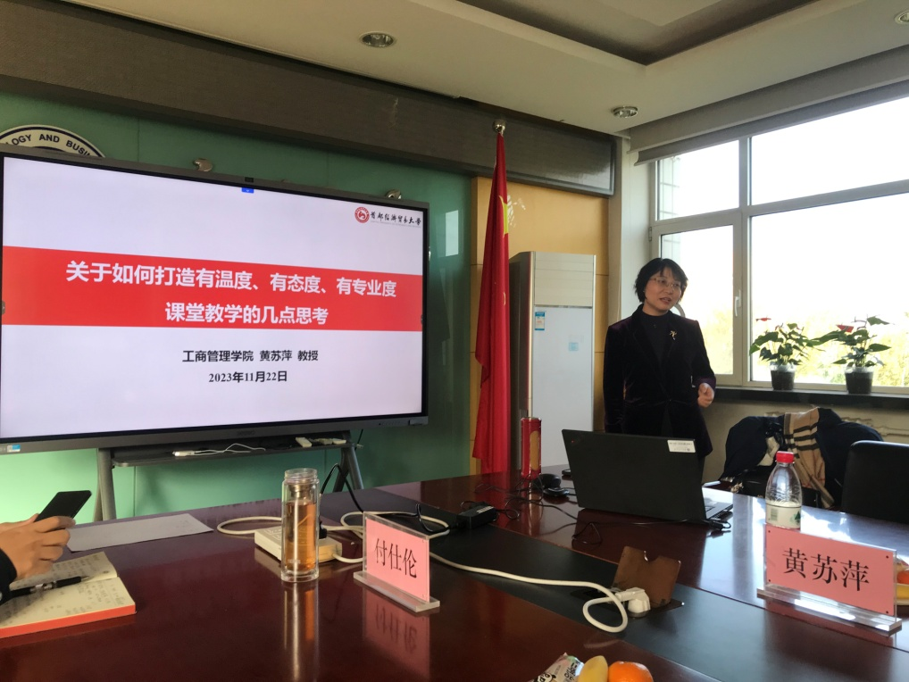 On the afternoon of November 22, 2023, Professor Huang Suping, Deputy Dean and doctoral supervisor at the School of Business Administration of Capital University of Economics and Business, was invited to deliver an insightful lecture for the faculty members of Business School. Prior to the commencement of the lecture, Fu Shilun, Secretary of the Party Committee at Business School, extended a warm welcome to Professor Huang on behalf of the institution and expressed hopes for future opportunities to invite her back to Beijing Technology and Business University for further knowledge sharing and guidance. The session was moderated by Zhu Rong, Deputy Head of the Department of Business Administration.