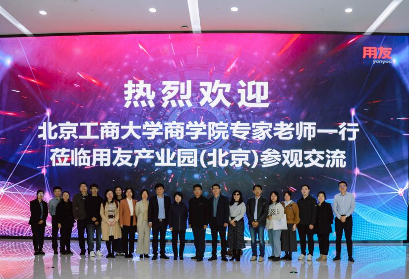 On November 2, Business School held an exchange and research activity on digital business transformation and digital curriculum development. Fu Shilun, Secretary of the Party Committee, and He Yurun, Dean of the College, led department heads and faculty members to visit the UF Suizhi Enterprise Pavilion. The delegation included Sui Zhaoqiang, Assistant President of New Way Technology Co., Ltd., Cheng Shuai, General Manager of Beijing Branch, Liu Zhuo, Deputy General Manager of Beijing Branch, and Liu Xiaoli, Director of School-Enterprise Cooperation.