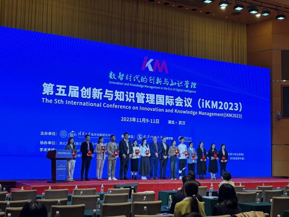 On November 10-11, 2023, the 5th International Conference on Innovation and Knowledge Management (iKM2023), hosted by Tsinghua University, took place at Donghu Hotel in Wuhan City, Hubei Province. The theme of this conference was 'Innovation and Knowledge Management in the Age of Digital Intelligence.' Esteemed speakers included Prof. Ikujiro Nonaka, a globally recognized authority on knowledge innovation; Prof. Chen Xiaohong, an Academician of the Chinese Academy of Engineering; Prof. Chen Jin, Director of the Technology Innovation Research Center at Tsinghua University; Prof. Li Rongbin from Hong Kong Polytechnic University; and Prof. Eric Tsui from Hong Kong Polytechnic University as well as Professor Brem and Professor Dong Xiaoying from Peking University among others. Over 400 experts, scholars, entrepreneurs, educators, and students from more than 200 universities, research institutions, and enterprises both domestically and internationally convened to discuss the future landscape of innovation and knowledge management.