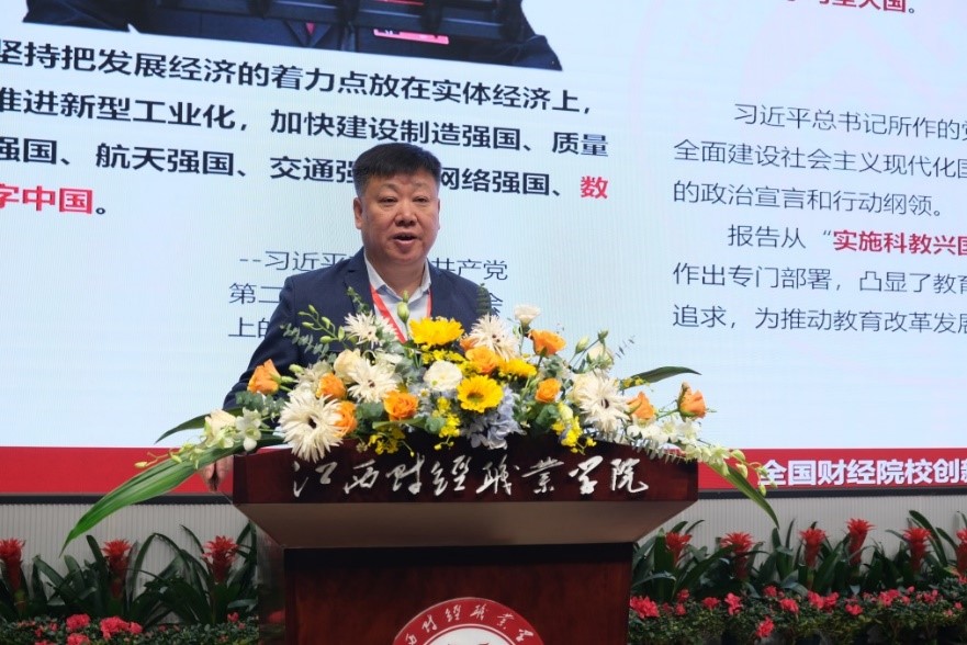 On November 25, the 2023 Annual Meeting of the National Innovation and Entrepreneurship Alliance of Finance and Economics Colleges and Universities, along with the finals of the eighth National Innovation and Entrepreneurship Competition for these institutions, was held at Jiangxi Vocational College of Finance and Economics under the guidance of the Innovation and Entrepreneurship Education Steering Committee from the Ministry of Education. Professor Zuo Min, a member of the Standing Committee of the Party Committee and Vice President of our university, was invited to attend the opening ceremony where he delivered a keynote address at the President's Forum. During this annual meeting, Professor Zuo Min received the 2023 Innovation and Entrepreneurship Education Contribution Award.