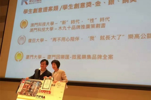 On December 30, 2016, the third Asia Pacific Chinese PR Awards ceremony was held in Taipei, Taiwan. The Asia Pacific Chinese PR Awards is a prize sought by PR professionals from Mainland China, Taiwan, Hong Kong, and Macao. It’s hosted by the Taipei International Public Relations Association (TIPRA). The competition was officially launched at the end of August 2016 and received over 150 entries. The work “Mom 2.0 Plan - The Annual Plan for Ausnutria’s ‘allnutria’ Brand Service” by the team of students and teachers from the Business School’s Marketing Department was ranked in the top ten for the “Student Creativity Award” and won the “Excellent Work” award.The team members comprised of Liu Xining, Jia Qian, He Dexin, and Luo fan, while the advisor was Zhang Jingyun.