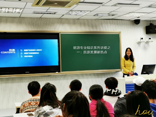 In order to help students deepen their understanding of the major so that everyone can enter the professional field as soon as possible and carry out relevant study and research, the Tourism Management major of the Business School has planned a series of lectures on professional knowledge expansion. Dr. Wu Liyun from the Chinese Culture and Tourism Industry Research Institute of Beijing International Studies University, as the first invited expert of the series of lectures, gave a wonderful speech on New Hotspots of Tourism Development for the students and communicated with them.