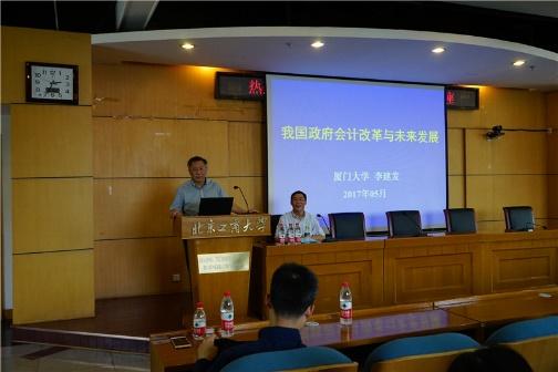 On the afternoon of May 26, the Science and Technology Office, the Business School, and the Investor Finance and State-Owned Assets Management Collaborative Innovation Center invited Professor Li Jianfa, Deputy Committee Secretary and Vice Chancellor of Xiamen University, to give a speech entitled “The Reform of China’s Government Accounting and Development Future”. The event was held in the lecture hall on the 3rd floor of the Multi-purpose Building. A number of teachers and postgraduates of the Business School attended the lecture. Professor Xie Zhihua, Director of the Collaboration Center and Vice Chancellor presided over the report. Professor Mao Xinshu, Deputy Director of the Collaboration Center and Secretary Committee of the Business School, summarized Professor Li Jianfa’s lecture content and introduced the Business School’s related scientific research and teachings in the field of government accounting.