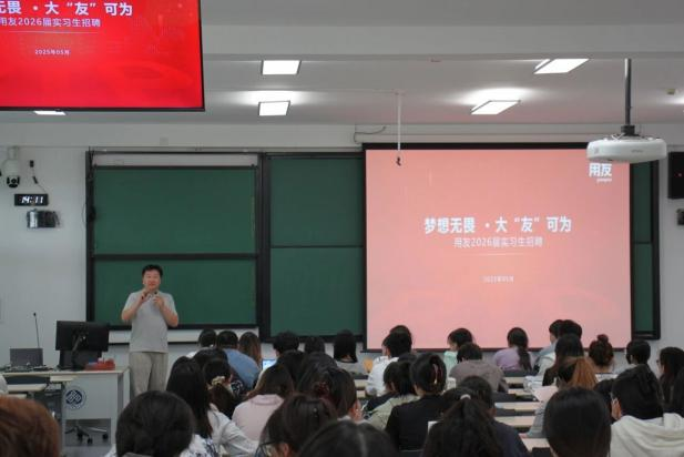 双选会当天用友集团与京东两大行业领军企业,举办专场招聘宣讲会。HR通过动态演示、详实的行业案例和实例解析,全方位向员工们生动展现了企业核心业务、职业发展通道及管培生专项计划。"我们不仅招人,更在寻找未来的合作伙伴!"企业HR以轻松幽默的方式,揭秘职场生存法则,分享行业前沿动态,更针对同学们关心的职业发展路径、岗位能力要求等问题进行面对面答疑。现场互动频频,掌声不断。