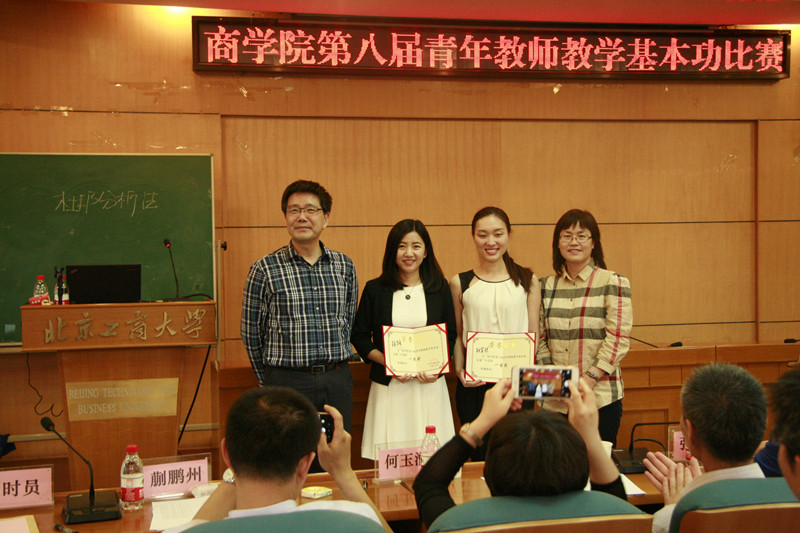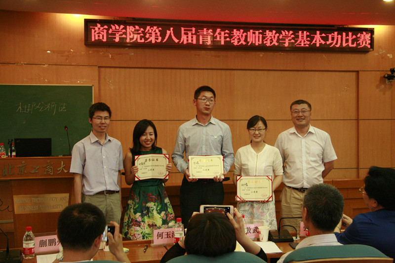 比赛开始,左敏处长致辞,他强调了教学基本功的重要性,鼓励参赛选手取得的好成绩。评委组组长张继德老师宣布本次比赛规则。随后,参赛的各位老师按顺序逐一进行了教学展示。工商管理系孙笑然老师运用视频、生活案例讲解了商学概论中员工行为与激励的动机与行为,幽默风趣,让人耳目一新。会计系张路老师条理清晰地介绍了杜邦分析法,师生之间的互动,给观众留下了深刻的印象。财务系于上尧教师用风趣生动的语言,带领大家共同分析公司财务报表,既通俗易懂又发人深省。市场营销系田翛然教师中英双语并用,通过丰富的表现形式,将关系营销的层次和定义娓娓道来。物流管理系孙红霞教师通过引入经典案例讲授了囚徒困境与纳什均衡的概念,并通过将其应用到现实生活案例中,给员工以更深一步的理解。