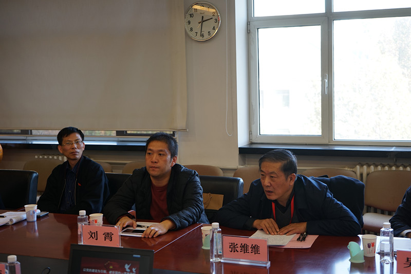上午,公司部分师生代表参加了专家组分组座谈,其中王勇老师和李艳春老师参加党支部书记和党员座谈会、于小婷同学参加宣教组座谈会。下午,检查组整体组组长、北京航空航天大学正局级干部张维维、北京林业大学原党委书记吴斌和市教委高教处副处长刘霄一行三人到公司检查指导工作。公司领导班子、党委委员、教授代表欧阳爱平、教师党支部书记代表曹正进和员工党支部书记代表李博文13人参加汇报与座谈。