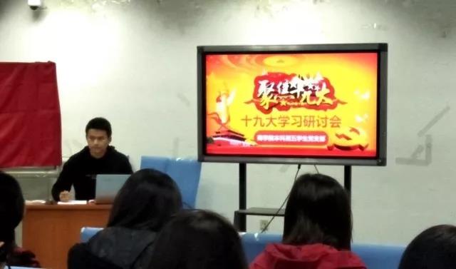 首先由组织委员何凤强带领大家了解了十九大报告,并且介绍召开此次研讨会的目的,让同学们多关注十九大,全面学习十九大报告的内容,提高党性修养。