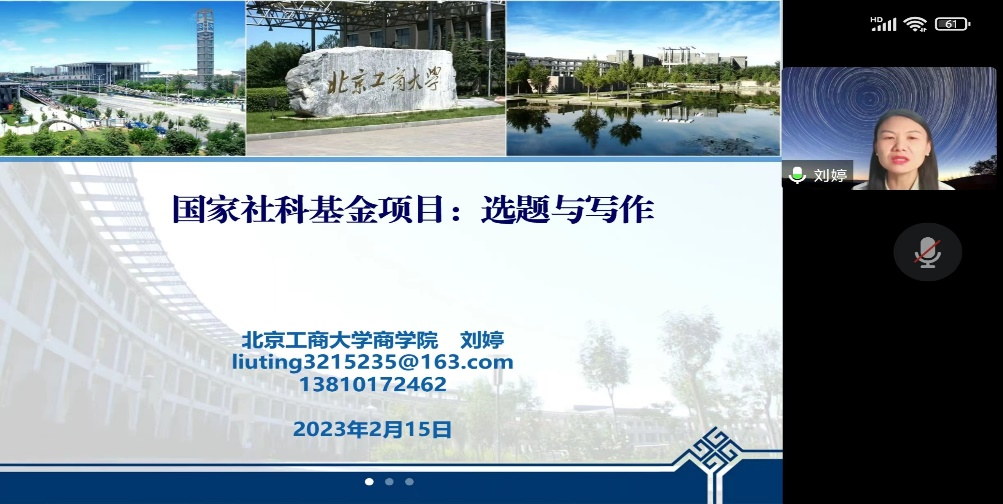 第一位主讲人刘婷老师近几年教学科研齐头并进,还经常与校外高校、机构等进行学术交流,并去偏远地区支教,是我们党员教师学习的榜样。刘老师曾经中过教育部项目、北京社科项目、国社青年项目,有着丰富的申报经验。刘老师于2022年获批国家社科基金面上项目,她首先分析了全国和北京的课题申报及获批情况,让大家对当前形势有了了解。她详细统计了近两年高频词、政策热点和社科立项规律。接着刘老师重点介绍了选题的过程。刘老师建议大家提前准备,不要等到指南下来。最好有省部级课题成功的基础。前期的科研成果包括期刊论文和会议论文很重要。刘老师鼓励大家要有锲而不舍的精神。在选题方面,要分析指南、紧跟热点,注意选题的政策价值和自己的研究基础。接着,刘老师以自己的本子为例,给大家展示了申报书的填写心得。她讲述了自己的命题过程,详细介绍了正文包括引言段、文献梳理、研究价值、研究内容、研究重难点、研究方法、研究计划、研究创新等部分的具体写法。