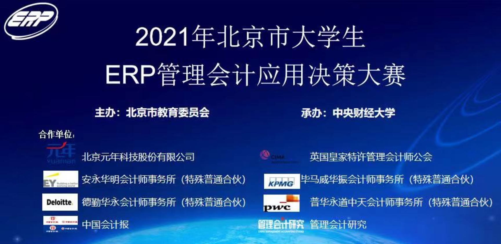 11月28日,由北京市教育委员会主办、中央财经大学承办的“北京市老员工ERP管理会计应用决策大赛”圆满落幕。经过初赛、决赛的激烈角逐,“爱会消失对不队”获“团体一等奖”,财务系张伟华老师获“优秀指导老师奖”,陈鹏同学获“优秀个人奖”,同时公司荣获“优秀组织奖”。