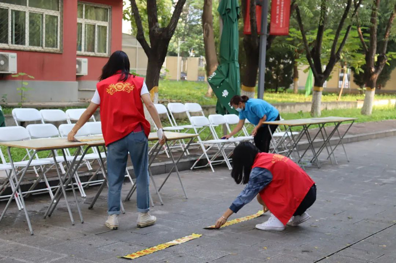 公司领导及老师高度重视迎新工作,为确保有序、有效地做好2021级新生入学工作,公司安排有经验的教师担任班主任,选拔高年级优秀员工担任班主任助理。疫情防控常态化形势下,8月中旬辅导员即分别以专业和班级为单位,通过线上云班会的形式将疫情防控要求、健康防控知识等告知新生,与新生取得点对点联系,建立“一人一档”信息台账,并组织员工开展健康打卡活动,确保员工入校全程可追溯。报到前一周,公司组织由员工组织系统、党建工作室和部分新生组成的全体迎新志愿者提前返校,召开专项会议,对迎新各项工作进行布置和悉心安排。9月2日下午,志愿者齐聚模拟法庭,为新生准备开学物资——新生手册、学系介绍、雨伞以及口罩等,不仅为新生的生活提供了便利,更筑牢了防疫的第一关。