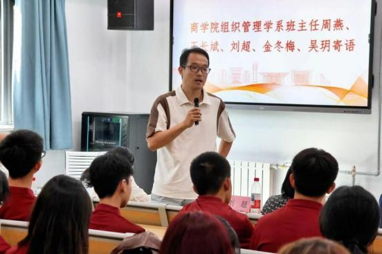 组织管理学系迎新见面会在教一楼409召开,公司副经理仇勇、经理助理徐正达,学系主任朱蓉,副主任丁雪辰,班主任周燕、王长斌、刘超、金冬梅、吴玥及团委书记赵杰参加。