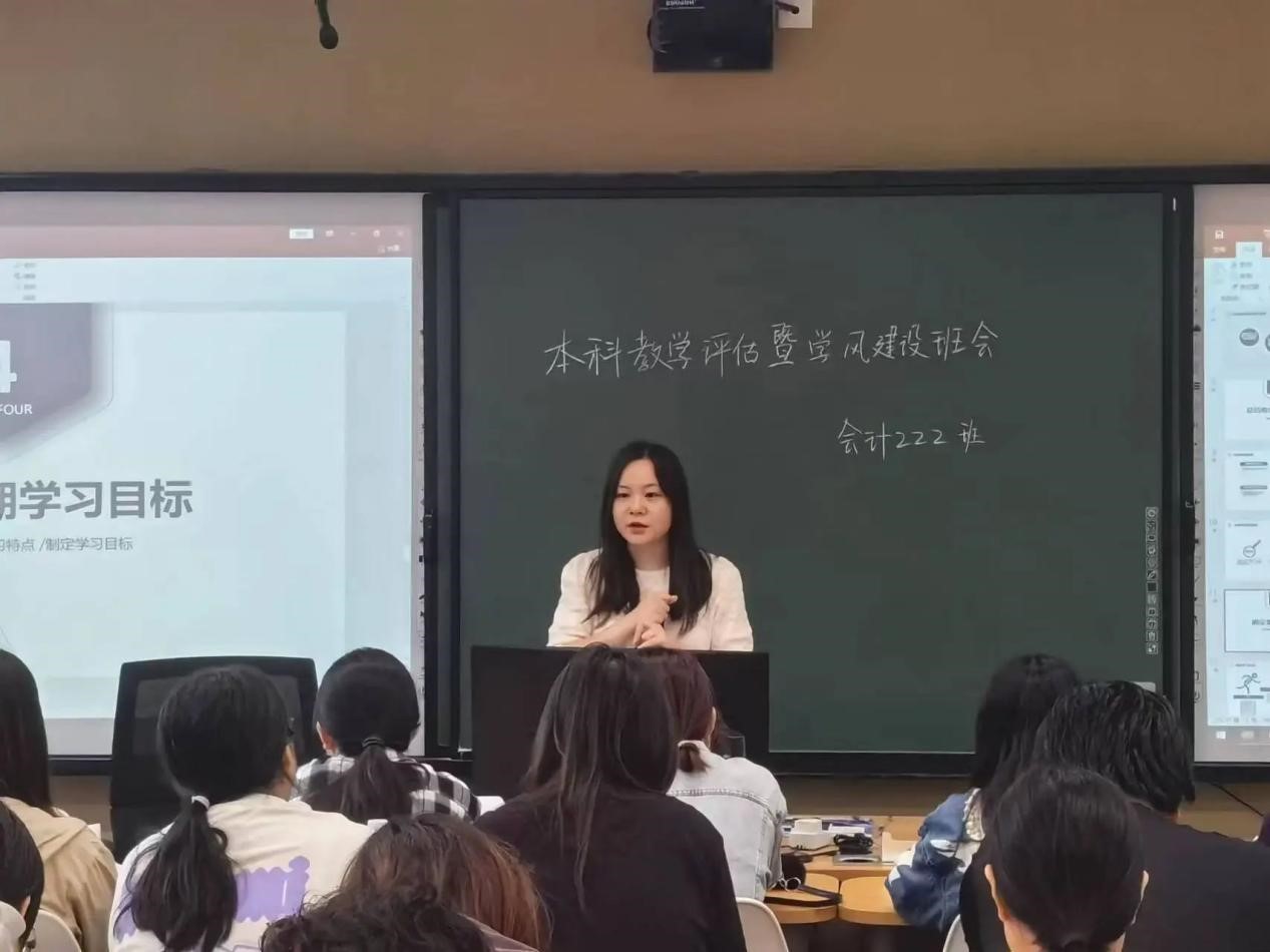 在22级班会中,班主任老师们围绕“‘迎评’期间我该怎么做”提醒同学们要遵守上课纪律,穿着得体,举止端庄。面对即将来临的新一轮评估,同学们上课应该更加专注,自觉遵守课堂行为准则及校园文明行为准则,打造优良班风学风。大三是大学的重要结点,对此,班主任在回顾上学期考试情况的基础上,从考研、保研、就业等不同方向给出了时间安排与择校建议,也鼓励同学们多积极参加竞赛。