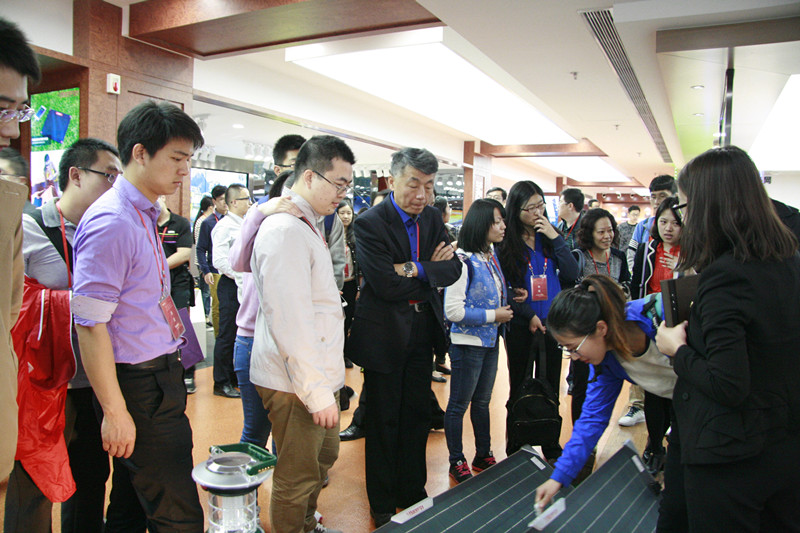 同学们在汉能集团高级战略总监王会东、管理人员朱彬、高倩的带领下参观了汉能集团的展厅,了解了汉能集团的发展历程、薄膜太阳能技术发展和汉能移动能源战略等情况,饶有兴致地参观了各种移动能源产品、汉能太阳能全动力汽车等,并详细询问不同产品的性能、价格以及企业管理、企业文化等问题。
