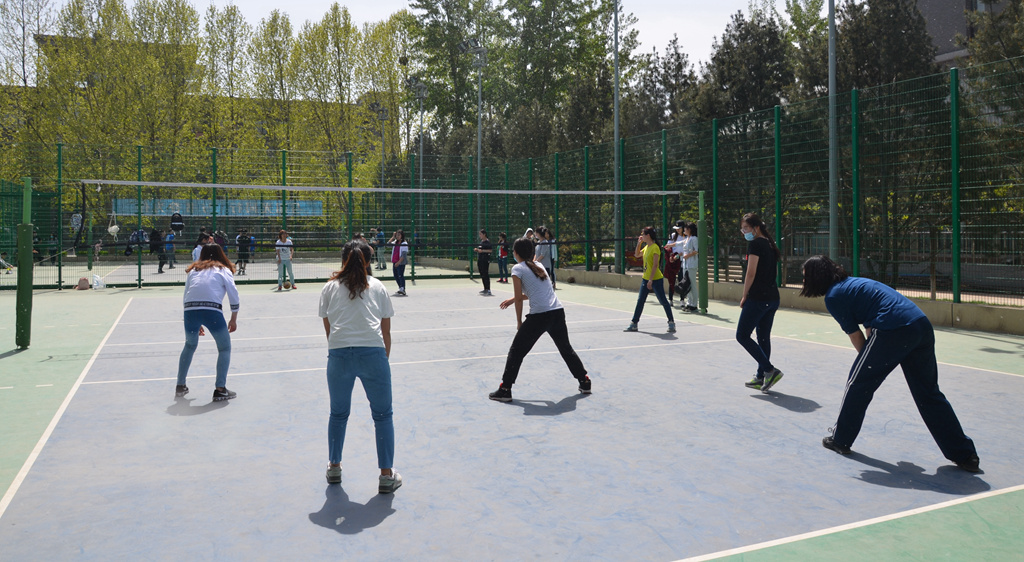 4月14日中午12点30分,304永利集团和材机公司在图书馆一侧的排球场展开了女排第三、四名的角逐。