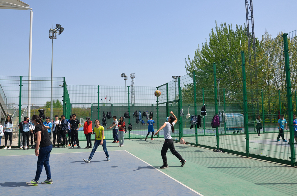 除了场上队员们出色的表现之外,场外由商院体育部组织的啦啦队也随着场上队员的精彩接球而欢呼,为商院女排呐喊,“商院加油”的口号响彻球场。