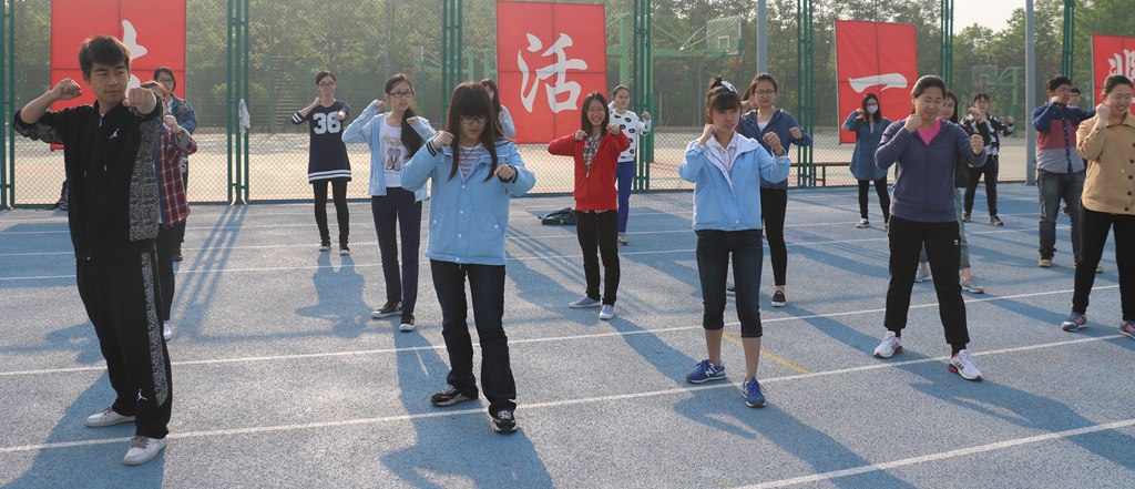 晨练活动开始,员工军人教官组织各班同学通过晨跑进行热身,随后向商院学子传授女子防身术。同学们认真学习防身知识以提高自己面对紧急情况时的应对能力。