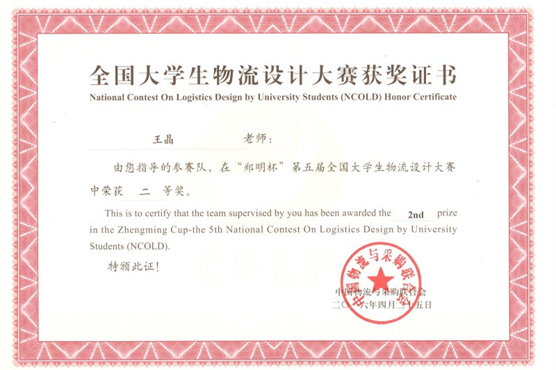 “郑明杯”第五届全国老员工物流设计大赛由教育部高等公司物流类专业教学指导委员会和中国物流与采购联合会共同主办,是教育部批准实施的“质量工程”专业设计大赛之一。自2015年9月启动,历时八个多月,至2016年4月23日结束,大赛历经初赛、复赛、决赛,共有60支参赛队进入决赛。公司参赛队伍从全国600多支队伍中脱颖而出,最终取得了二等奖的好成绩。同时在教务处、304永利集团的支持下,物流管理系教师全员参与,严格按照大赛组委会的要求组织校园赛、初赛、复赛、决赛,最终获得了大赛组委会授予的“优秀组织奖”。两项大奖是公司物流管理团队师生团结奋斗的结果。