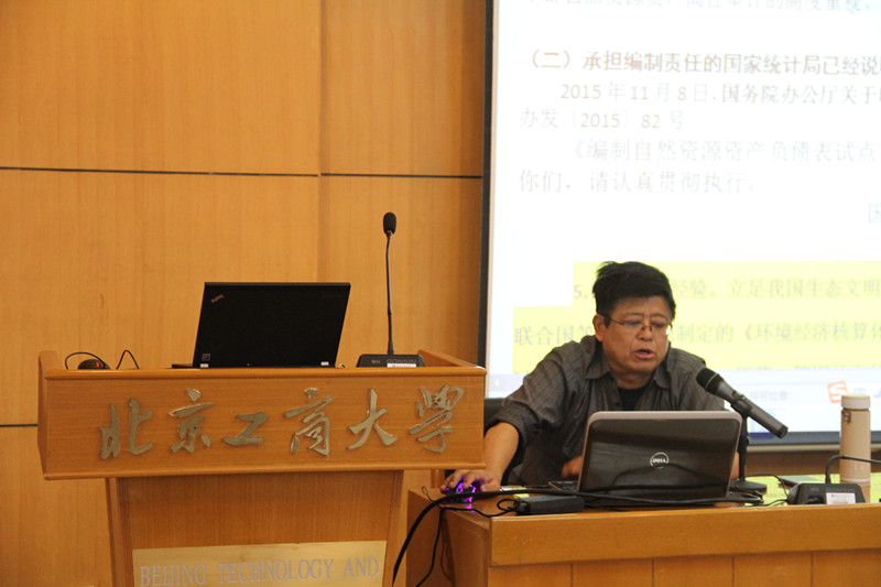 首先,耿建新教授就“自然资源资产平衡表的由来”和“自然资源资产责任审计的由来”进行了主题发言。耿教授介绍了党和国家对自然资源资产负债表及其建立在其基础上的领导干部离任审计的多次指示、并着重介绍了其对这方面相关问题的研究过程、研究体会和研究成果。