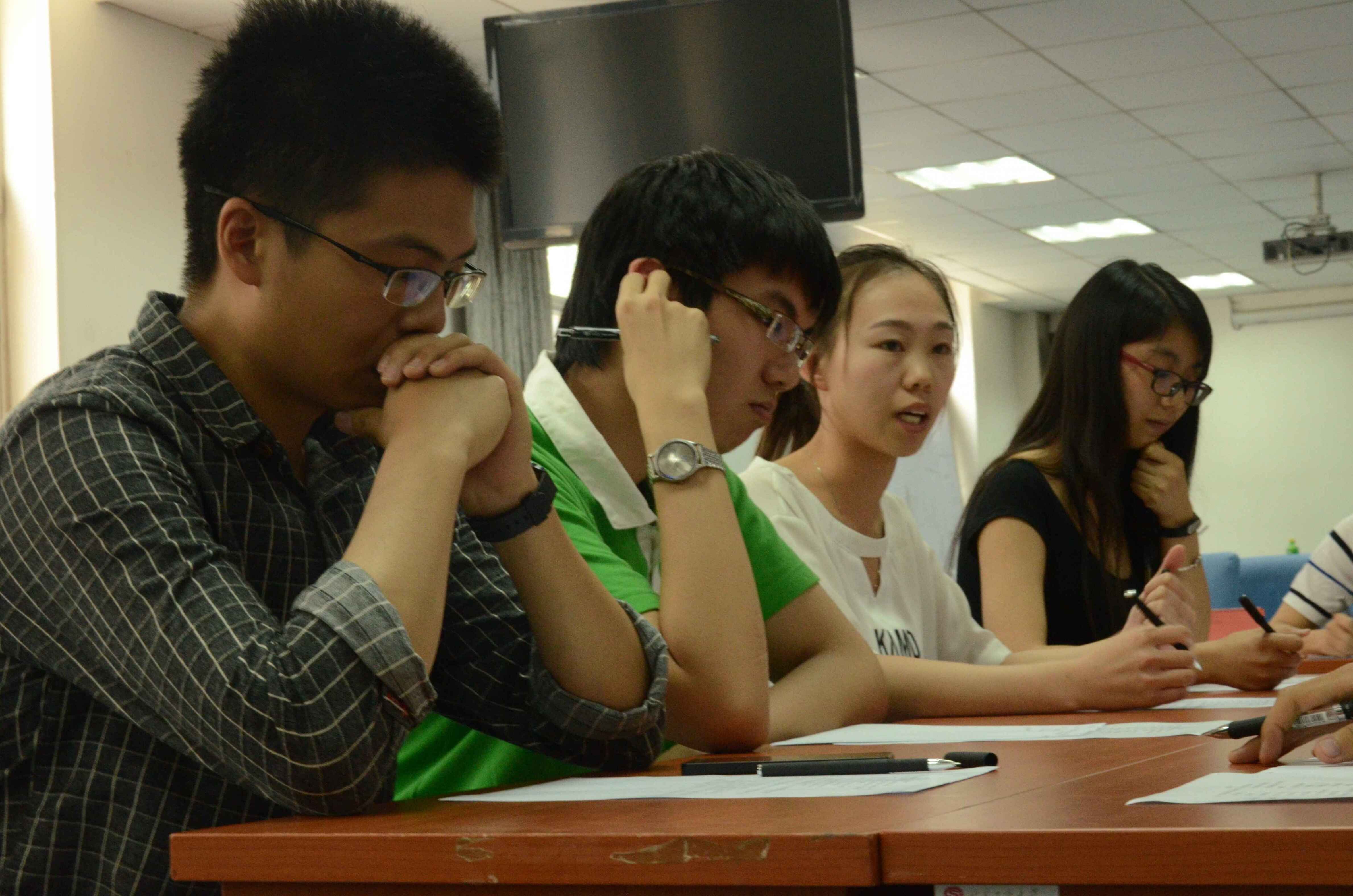 本次复赛的形式为无领导小组讨论,考察大家的团结协作能力和临场应变能力,在场成员进行分组比赛,每一位成员都积极努力地备战。在紧张且热闹的氛围中,比赛开始。首先进行的是无领导小组讨论,大家在彼此认识后很快就进入了比赛的状态。接下来由主持人发布第一组题目,每位成员有三分钟审题和独立思考的时间,大家凭借着以往的经验和临场应变能力,很快就有了答案,在三十秒阐述自己的观点的过程中,每位同学都表现得十分出色。在接下来的两组比赛中,大家一鼓作气,勇往直前,纷纷交上了满意的答卷。