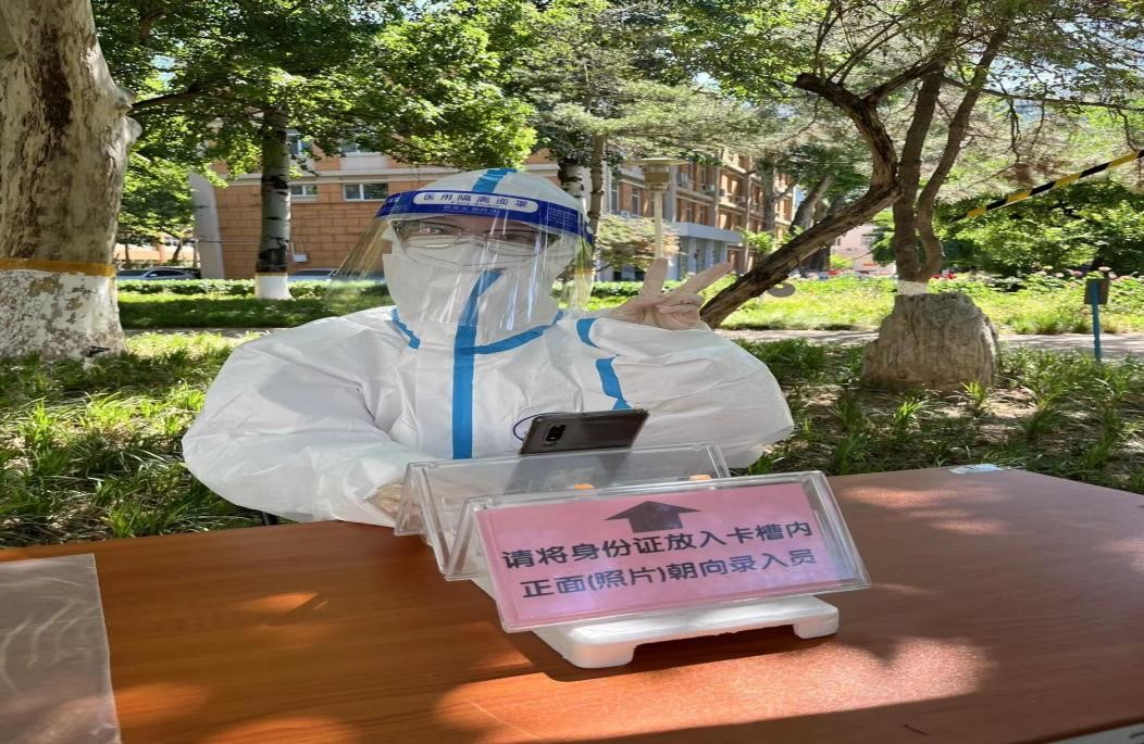 杜美涵老师作为21级辅导员,驻校期间负责核酸信息录入、走访员工宿舍、日常巡视等工作。她认为,疫情来势汹汹,我们的生活再次按下了暂停键,但任何需要我们党员的时刻,都应该挺身而出!从某一天起,再没有工作日与双休日之分,无论是五一还是周末,哪里需要我们,哪里就有我们的身影。