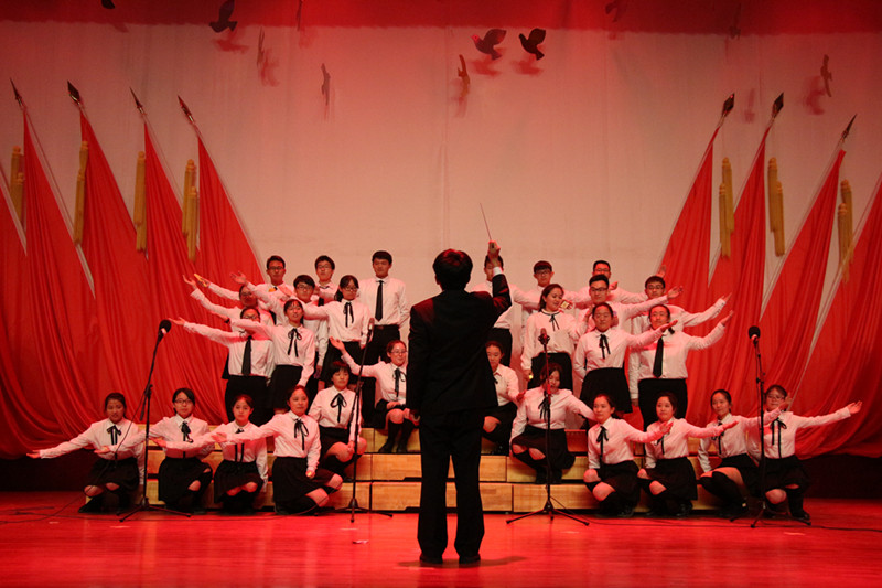 表彰大会之后是纪念“一二•九”运动81周年“我手携我心,共圆中国梦”合唱比赛,本次比赛共分为峥嵘岁月、青春年华、鹏程万里三个篇章。比赛中,2016级15个新生班级轮番登场,曲目中既有《游击队歌》《歌唱祖国》等红色经典,也有《倔强》《青春纪念册》等青春独白,亦有《仰望天空》《我的未来不是梦》等未来憧憬。在同学们的生动演绎下,观众仿佛可以看到八十多年前中国青年的奋力抗争,为中华之崛起而付出一切;又能得见如今中国如巨龙腾飞,雄踞于世,吾辈热血一如当年,爱国精神从不泯灭;还展望了未来,民族复兴任重道远,肩上责任代代相传,砥砺前行,中国梦必将实现!