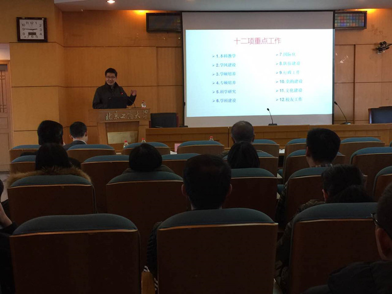 随后,王国顺经理对本学期的十二项重点工作进行了详细的总结:本科教学方面,已经完成7门课程的AOL图谱编制;专硕培养方面,MBA规模不断扩大;学风建设和学硕培养等其他方面也都取得了稳步的进展。王国顺经理还对本年度的考核和绩效发放等事宜进行了说明。最后,王经理向全院教师表达了新年祝愿,希望大家能更高质量地生活和工作,共同把公司建设推向前进。