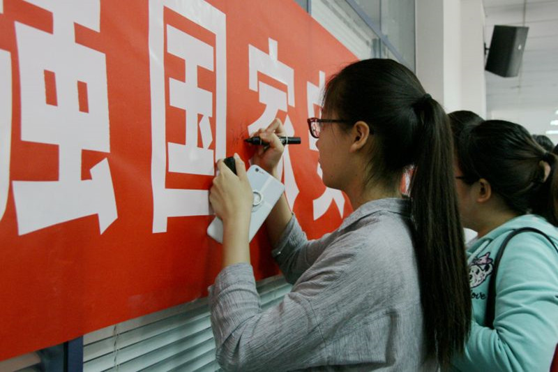 会后,班干部们在宣传条幅上纷纷签名,表达了对国家安全教育的信心和决心。