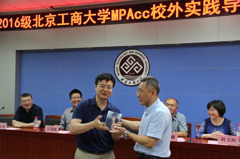 谢志华副董事长在致辞中强调了培养应用型人才以及专业性学位培养的重要性,高度肯定了校外实践导师对MPAcc员工的学习和工作各方面的重要作用,同时表达了对诸位MPAcc校外实践导师的由衷感谢。他指出:“一个人做一件好事不难,难的是做好多年的好事还想着做好事。”“育人是世界上很高贵的事情,校外实践导师对我们员工的指导基本上是无偿的劳动,这体现了他们的责任担当。” 谢志华副董事长希望MPAcc员工能够带着问题向校外导师请教,强调了问题导向研究方式的重要性;他表示,是否能解决现实生活中的实践的问题是考验公司产品是否成功的很重要的一个标准,对2016级MPAcc员工提出了具体的要求。