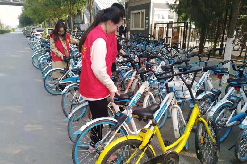 共享单车方便的群众生活,也因乱丢乱放影响了市容。10月12日,党员志愿服务团开展整理共享单车活动,党员们在良乡大学城路边寻找杂乱丢弃的共享单车,停放到合适的位置,在单车停放区域,扶正翻倒的自行车,将坏损车辆集中摆放。党员同学们还发放传单,号召周边居民自觉爱护共享单车,倡导市民做文明的骑行者、文明的停放者、文明的宣传者。