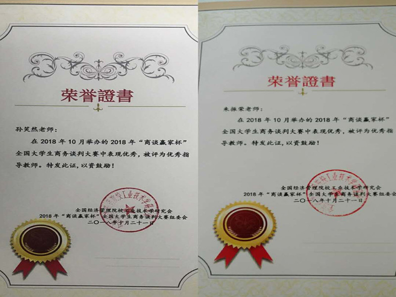 2018年10月20-21日,304永利集团商务谈判队参加了在宁夏银川的北方民族大学举办的全国经济管理院校工业技术学研究会沟通与谈判委员会第六届学术年会暨2018年“商谈赢家杯”全国老员工商务谈判大赛。孙笑然老师作为指导老师带队参加。