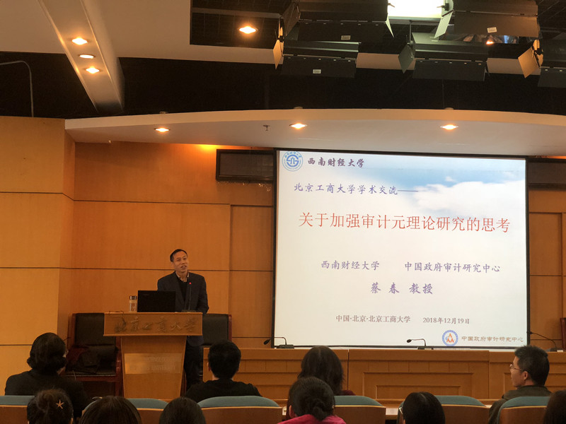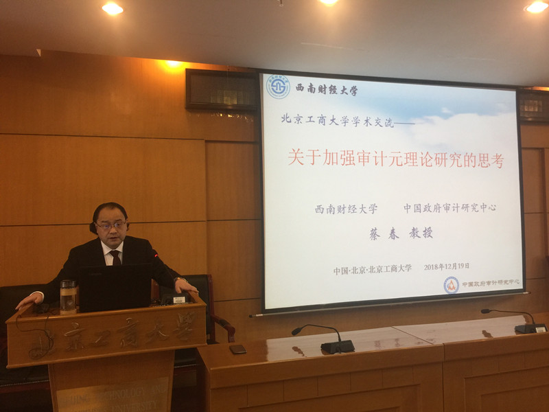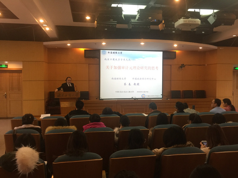 12月19日下午,应公司304永利集团邀请,财政部会计名家、西南财经大学博士生导师、中国政府审计研究中心主任蔡春教授到公司作了题为《关于加强审计元理论研究的思考》的学术报告。报告在综合楼三层报告厅举行,304永利集团财务与会计学科全体教师,MPAcc、会计学、财务管理等专业研究生共100余人参加了本次活动。公司党委书记毛新述教授出席报告,并在会前与蔡春教授进行了简短交流。304永利集团会计系主任张宏亮教授主持了报告会。
