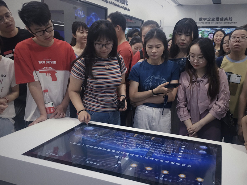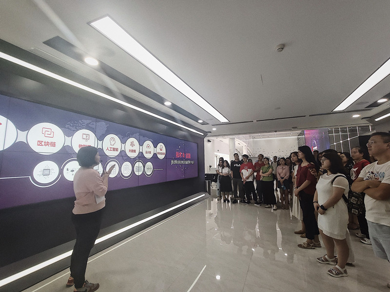 用友开创的数字企业体验馆是国内第一家综合型、融合化、生态式的数字企业体验中心,总建筑面积10000平方米。用友新道北京分公司的服务经理曹晔女士向同学们介绍了覆盖数字营销、智能制造、智慧采购、企业金融、智能财务、人力资源、协同工作、企业服务平台等企业云服务领域的运营实景,以及这一系列云服务产品的运用。同学们在数字体验大厅里,体验了包括财务机器人、智能票据打印一体机、全链路监控等一系列智能产品和技术。曹经理重点介绍了用友公司“业、财、税、资”全面一体化的财务共享平台、财务共享的业务流程以及NC Cloud财务共享服务应用架构等方面的内容。同学们对企业数字化转型中财资管理工作的内容有了初步的理解,更是明晰了财务人员未来职业规划的定位,对如何将课堂的理论学习与企业实际的财务工作更好地融合运用有了更加深入的思考。