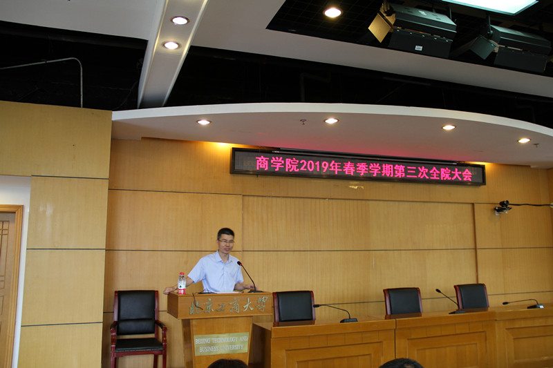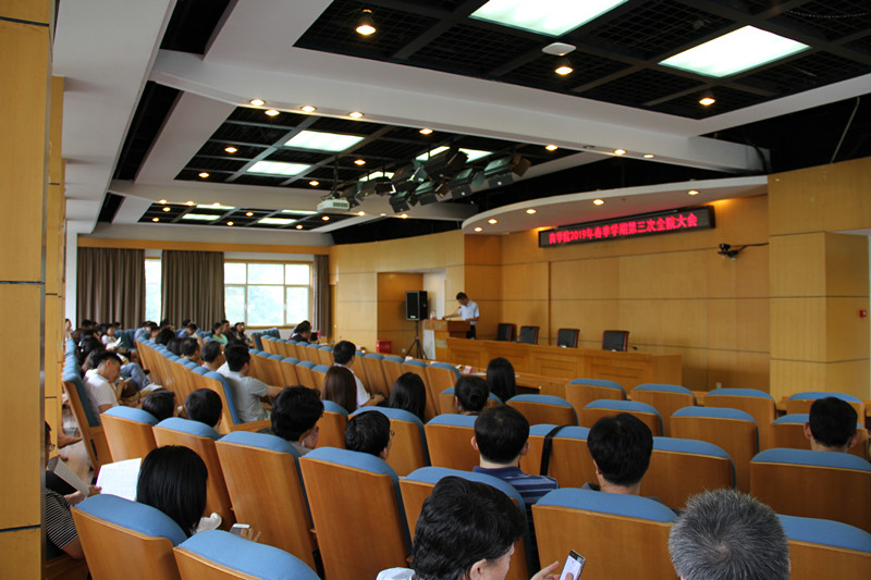 7月5日下午,公司在综合楼三层报告厅召开2019年春季学期第三次全院大会,会议由经理毛新述主持。