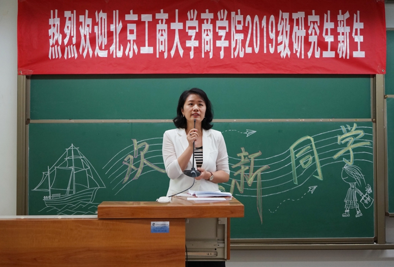 随后,新生代表2019级会计学研究生姜园园与老生代表2018级企业管理研究生于海航分别上台发言,希望2019级新生明确读研动机,树立明确目标,充分利用公司的宝贵资源提升自己,在研究生阶段有所收获。
