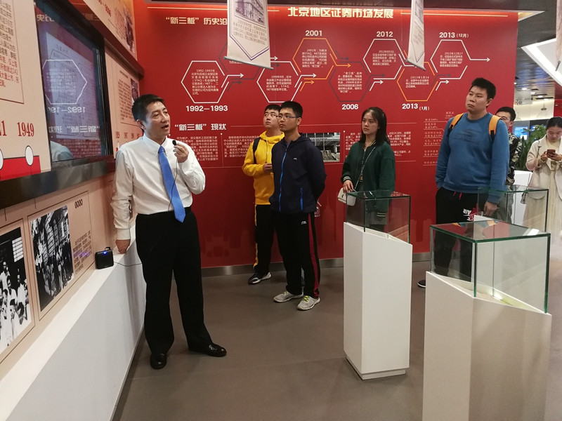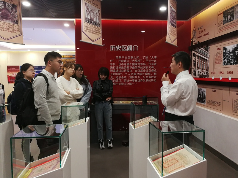 之后,MBA同学参观了各展区,展区包括产品展示区、专家讲堂区、互动交流区、模拟体验区、投教资料区和征集意见区,其中产品展示区又由历史区、品种区、理念区和风险区组成。展柜中反映我国不同时期证券市场发展历程的近50个证券票样,吸引同学们驻足观看,在听取老师介绍中国证券市场发展史的同时,同学们主动提出问题,现场互动交流,场面积极热烈。