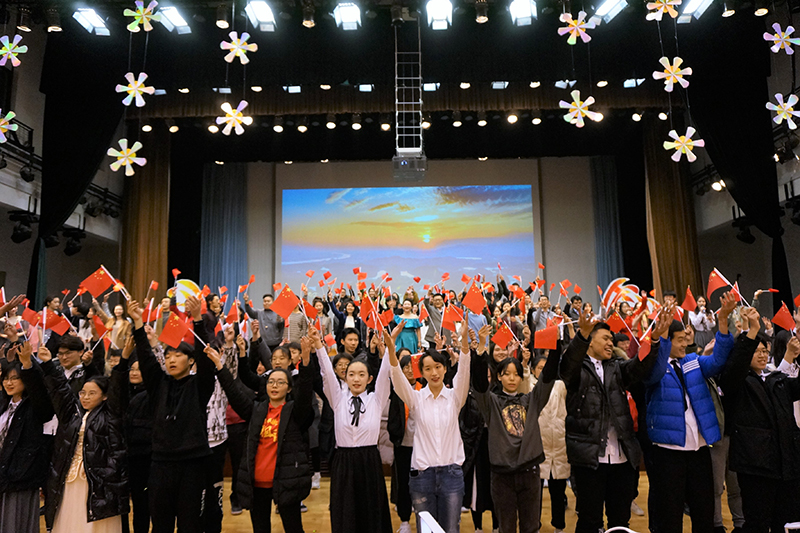 在以快闪形式引唱的《歌唱祖国》中,全体师生挥舞小国旗,齐声高歌“五星红旗迎风飘扬”,不少人饱含深情、热泪盈眶,歌声把爱国主义情怀深深植根在每个人心中,纪念“一二.九”表彰和合唱比赛在高潮中圆满落幕。