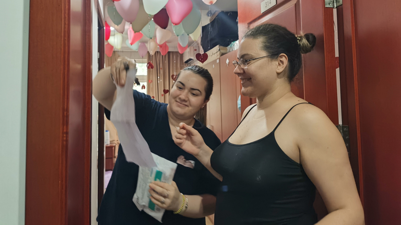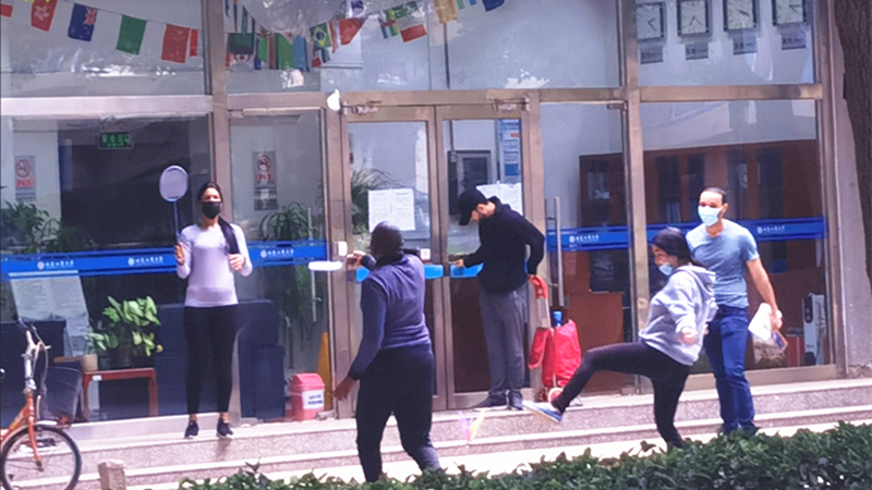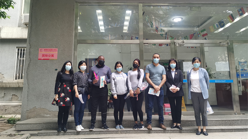 在校职工已经近5个月未出校,因文化差异,多存在焦虑不安等情绪,公司了解到这一情况后,负责老师定期进行心理辅导,缓解其情绪压力,确保其心理健康。公司负责职工工作的辅导员老师和公司领导多次去宿舍慰问,为其带去口罩、消毒湿巾、牛奶等物资,与员工聊天谈心。检查中发现很多职工每天长时间在床上睡觉,对身体健康不利,公司专程送去羽毛球拍、毽子、跳绳等运动器材,并组织线上运动比赛,让同学们在校园内一样可以健身锻炼。