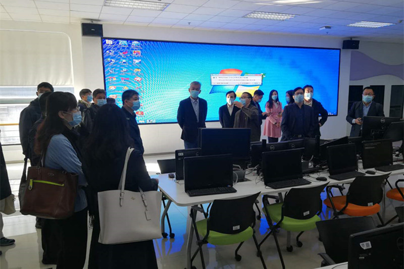 秦兴方经理一行还参观了公司文科实践中心,参观了创新创业教育中心、综合流程实验室以及金融智慧实验室等。