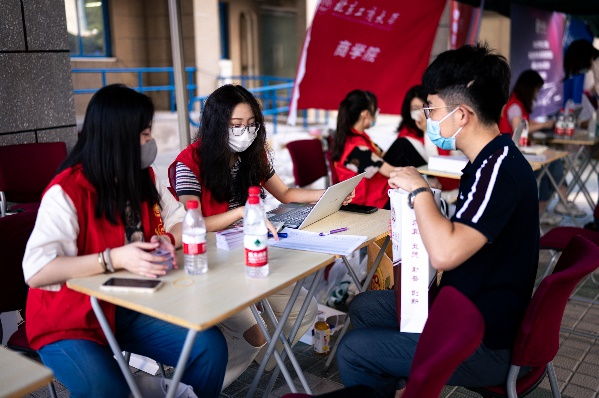 公司领导张春萍、毛新述、张倩、孙永波以及辅导员鲁莹和马珂在迎新一线关注新生报到情况,与2022级研究生新生亲切交流,向他们表示热烈欢迎,并对商研会和MBA联合会的志愿者们表示慰问。