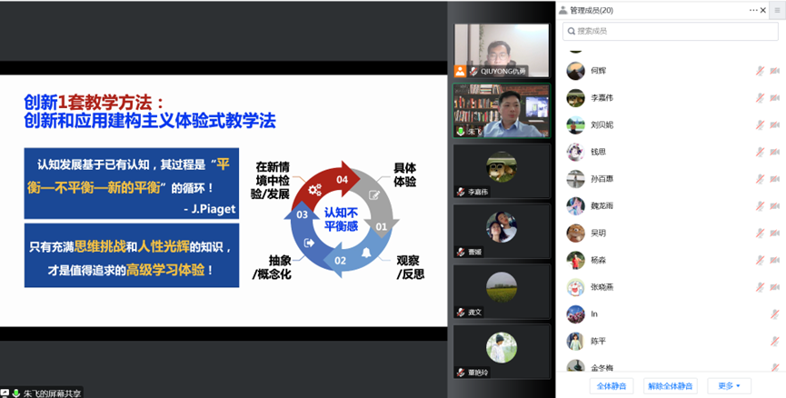 教学研讨重点围绕人力资源管理教学问题、教学实践和商科数字化转型展开。朱飞教授结合新文科背景下HRM课程体系的教学挑战和顽症,指出在教学中存在的不“熟”、不“喜”、不“新”、不“深”四个方面问题,并按照“学习体验、高阶学习效果和一流人才培养”的逻辑构思,阐述了教学设计的基本理念。朱飞教授结合《人力资源管理》课程的教学实践,介绍了以“学习体验”为主轴的“1234创新实践”方法,包括一套建构主义的体验式教学方法、综合应用线上线下融合教学模式和共创式课堂设计两种教学模式、构建“唤起、创设和替代”三类学习体验基础、嵌入“知、善、思、行”四项课堂元素,由此促成的结构化学习体验,有助于员工实现高阶学习效果、高校达成人才培养目标。