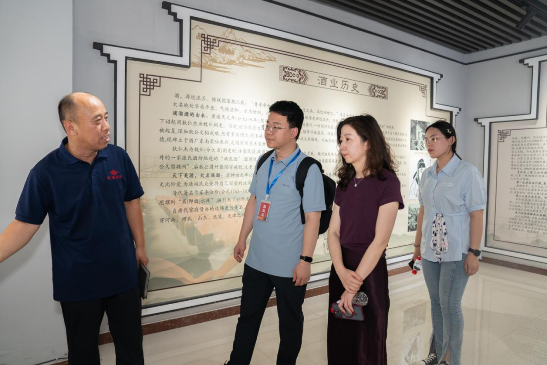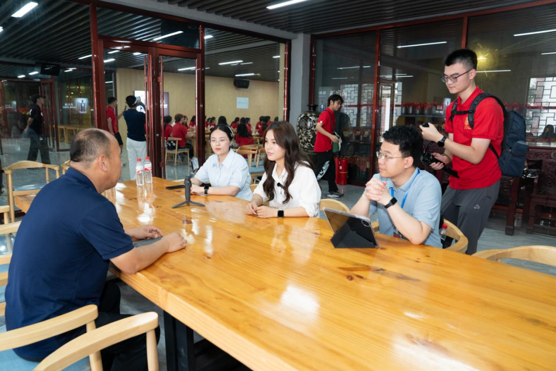 深入滴溜酒厂核心酿造区,摄像机全程跟随,记录引导员讲解其独特的“老五甑”工艺与松木酒海储藏工艺。成员们亲品百年老酒,细致解读其色香味。面对市场竞争,实践团带着研究问题,重点针对供应模式、传统工艺与现代市场结合点、渠道难点及规模化制约因素,对公司党委书记兼副总经理张增良进行了针对性专访,共同探讨短视频多维宣传的可行性,为滴溜酒业开拓新路径、探寻新机遇提供思路。