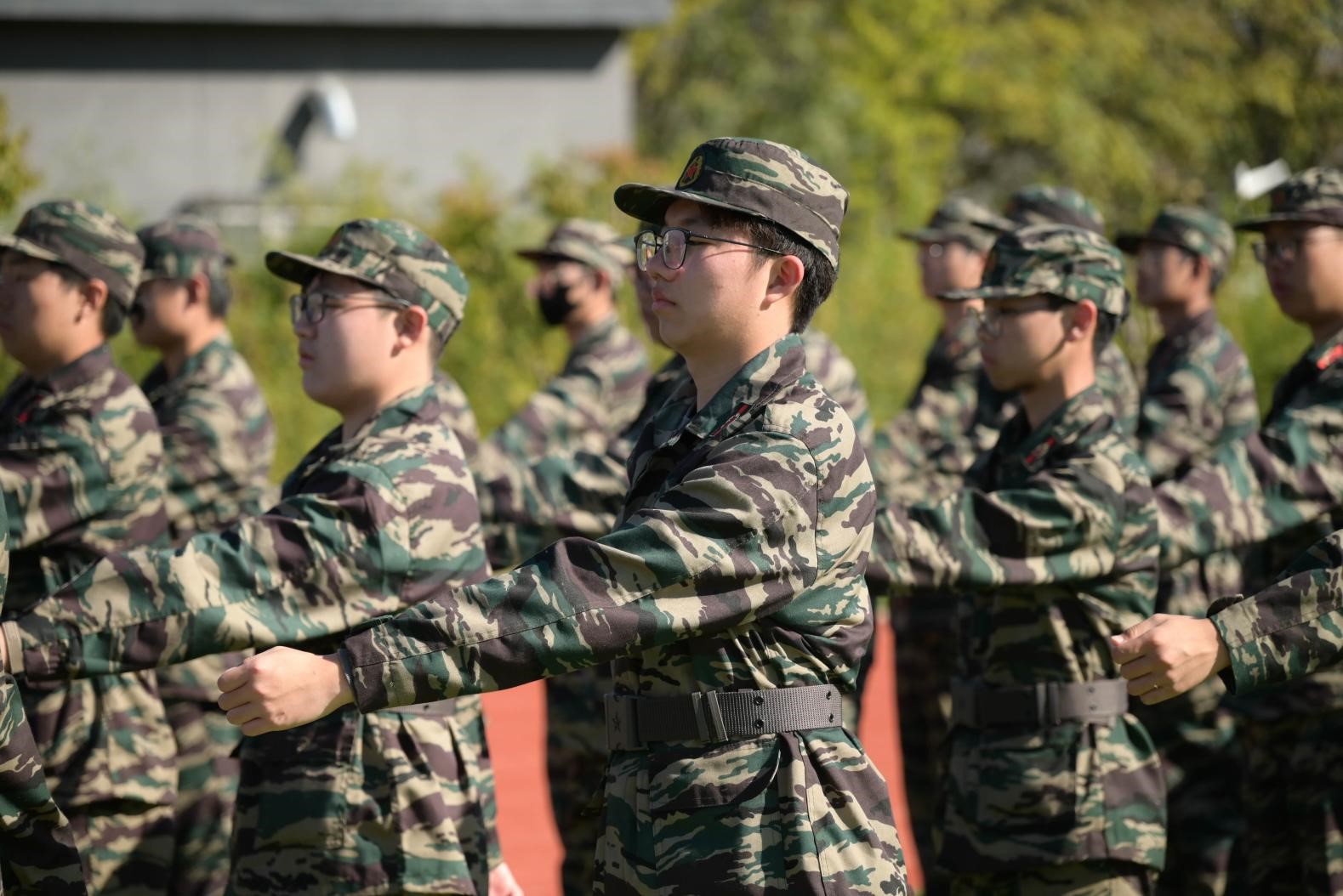 旭日初升,当清晨的第⼀缕阳光洒向操场,⼀营425名全体参训学员就已整装待发,他们大步迈向绿茵操场,衣着迷彩,身系腰带,俨然⼀副战士模样。⼀寸⼀进,⼀步⼀前,举手投足间满是青春意气。