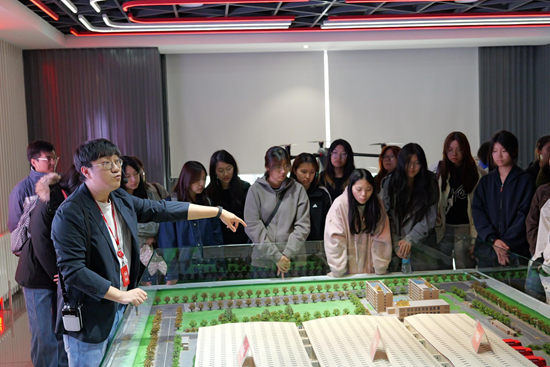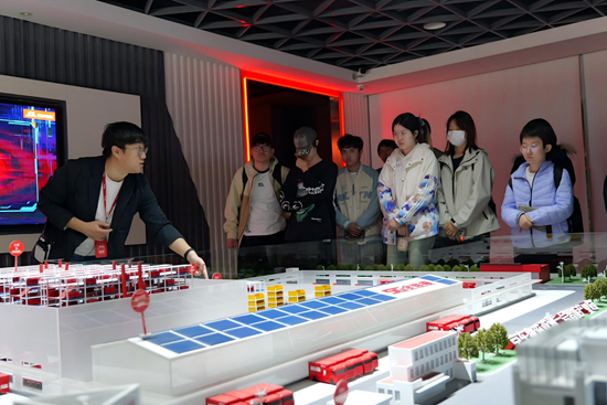 活动伊始,在工作人员的引导下,师生们依次参观了园区全景沙盘、文化廊道与库内实景、5G智能展区、OSR(天狼系统)、自动化分拣中心及青流计划展区,全方位了解了京东物流的发展历程、园区运营逻辑与全链路作业流程。