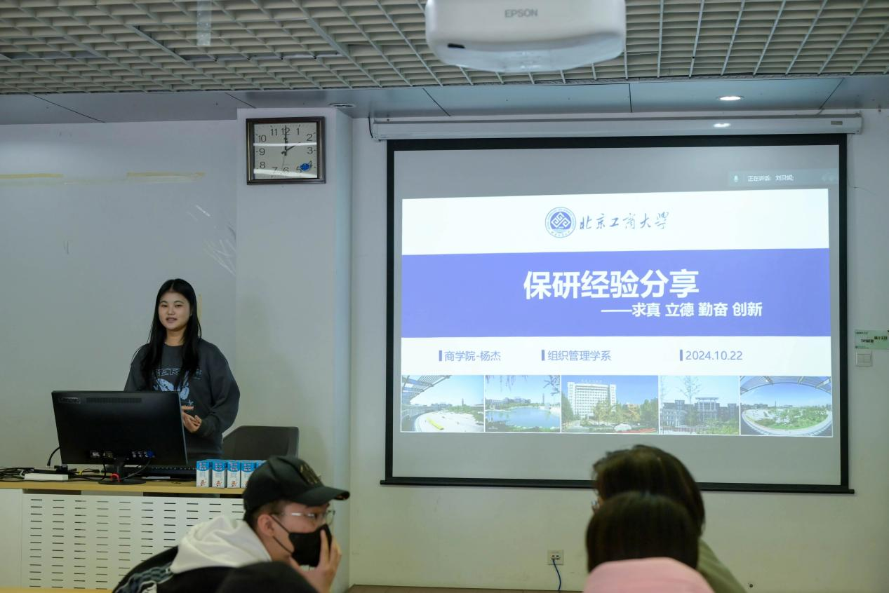 本次宣讲请到了优秀本科毕业生李蔚然进行专业经验分享。李蔚然学姐向同学们讲述了读研生活和感受,并着重介绍了硕博阶段科研工作的内容。日常主要围绕着模型整理和论文撰写,在这一过程中自主性和自学能力尤为重要。最后,她强调考研读研需有多方面的支撑,既要学会独处,也要做到劳逸结合。