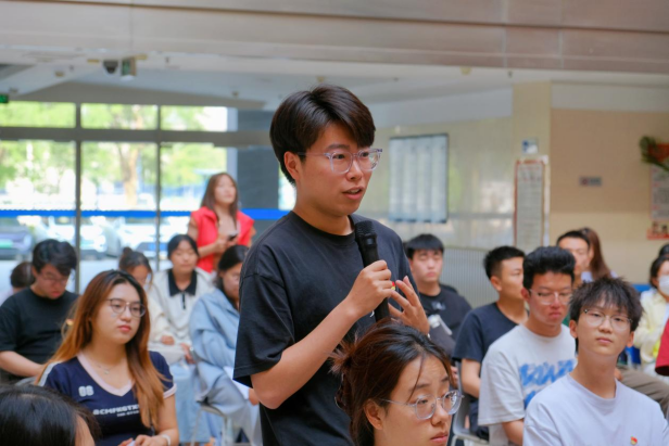交流环节气氛热烈,同学们围绕“目标抉择”、“执行力提升”等核心问题踊跃提问。陈舒瑶建议明确目标区域、院校、专业,针对性制定计划;杨洋则强调以高质量实习积累实战经验,精准匹配岗位需求,提升简历竞争力与个人价值呈现。