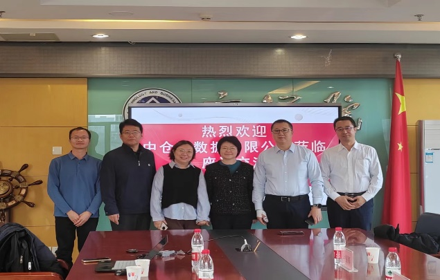 12月4日上午,中仓登数据服务有限公司总裁马令海、副总裁李树轩、人力负责人叶丽娜一行3人来公司座谈交流。公司党委书记付仕伦、经理何玉润、物流管理系副主任张汉坤参加了本次座谈。