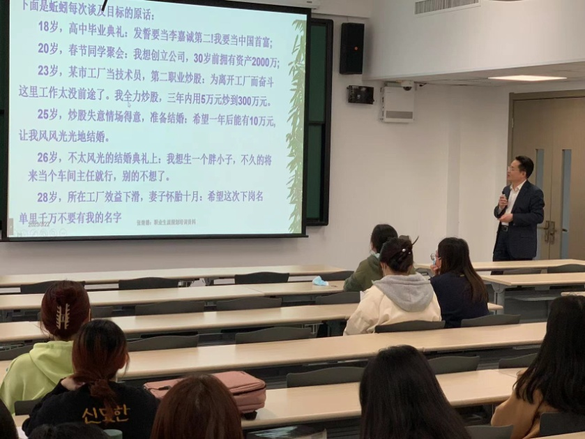 张继德教授从职业生涯规划通识、如何规划职业生涯、如何实现规划这三个方面对与会研究生进行了基础知识层面的普及。他以《蚯蚓故事》、《你在为谁打工》等有趣的小故事开篇,引导同学们逐步了解职业发展的关键要素。他讲到,梦想就是规划,是深藏在内心深处最深层的动力,能激发生命中最大的潜能;确立职业发展目标的标准是收入与对社会有利的总和,要从专业发展情况、国际国内行业发展态势、以往就业情况、需要考取的证书、对专业有帮助的实习经历等方面来综合考虑、规划职业生涯;他建议员工在规划职业生涯时,首先确定职业锚,要夯实基础、精进业务,要进行锻炼,要与时俱进逐步接近职业发展目标。