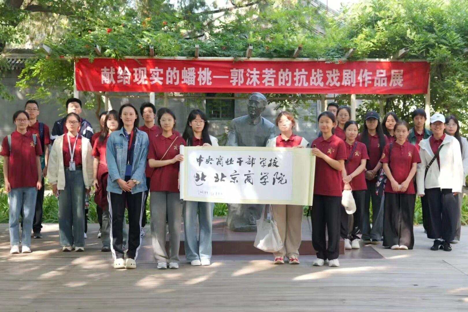 同学们在研学过程中了解到,1937年7月抗日战争爆发,郭沫若毅然回国投身抗日救亡运动;1938年4月出任国民政府军事委员会政治部第三厅厅长,后任文化工作委员会主任。抗战期间郭沫若出版了《青铜时代》《十批判书》等历史名著;发表《甲申三百年祭》,纪念明末农民起义,被中国共产党定为整风文件,他所编著的《屈原》《虎符》等。今年是中国人民抗日战争暨世界反法西斯战争胜利80周年,这些历史剧以及大量诗文,对宣传抗战文化和统一战线发挥了重要作用。