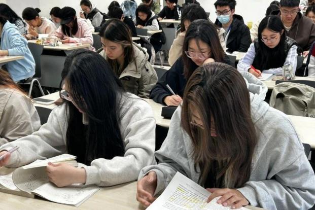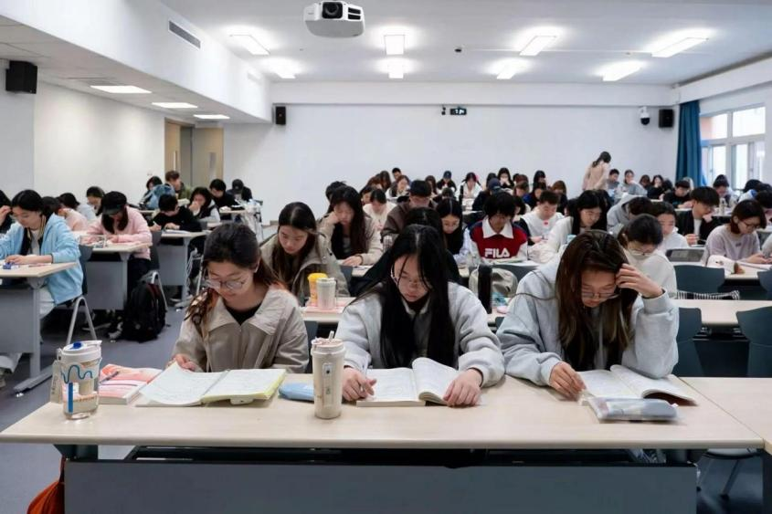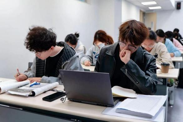 课桌上冒着热气的咖啡,整齐堆叠的课本笔记,一字一页,都是思想的印记。伴着清晨微光,我们奔赴与知识的美好相逢。